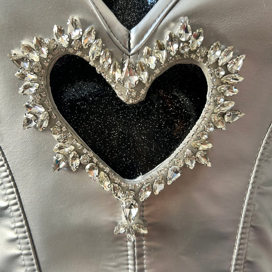 Custom Sabrina Carpenter Silver fringe corset top with heart detail