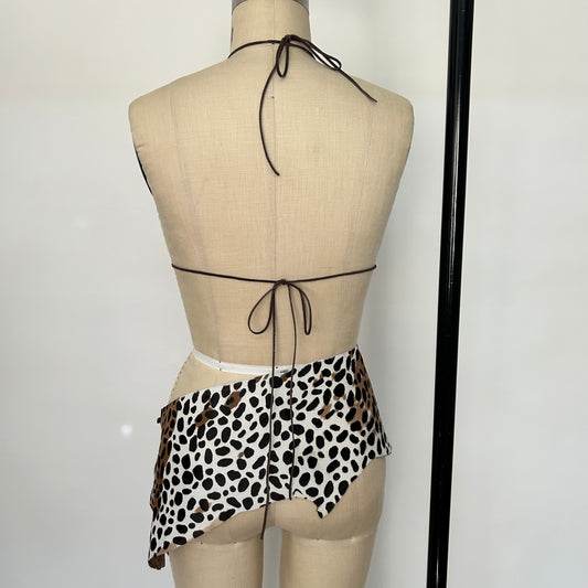 Custom Animal hair print genuine leather loincloth and fringe top set