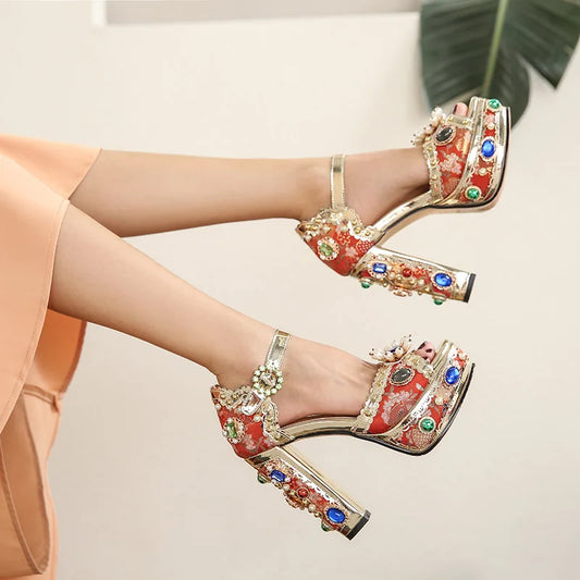 Jewel Platform Pearl Rhinestone Baroque High Heels