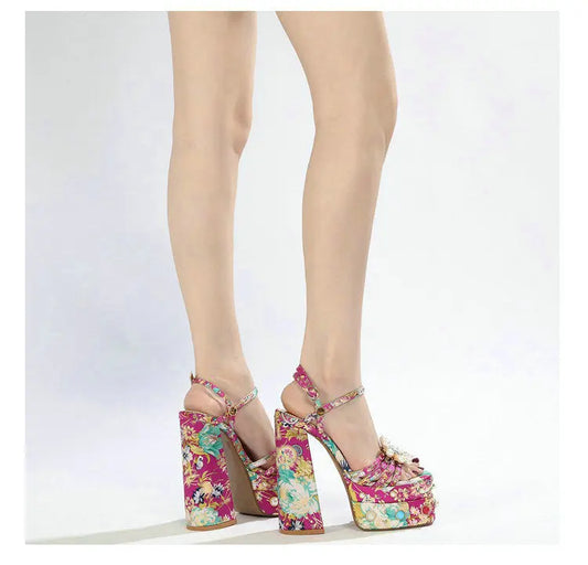 70s Flower Power Platform High Heels
